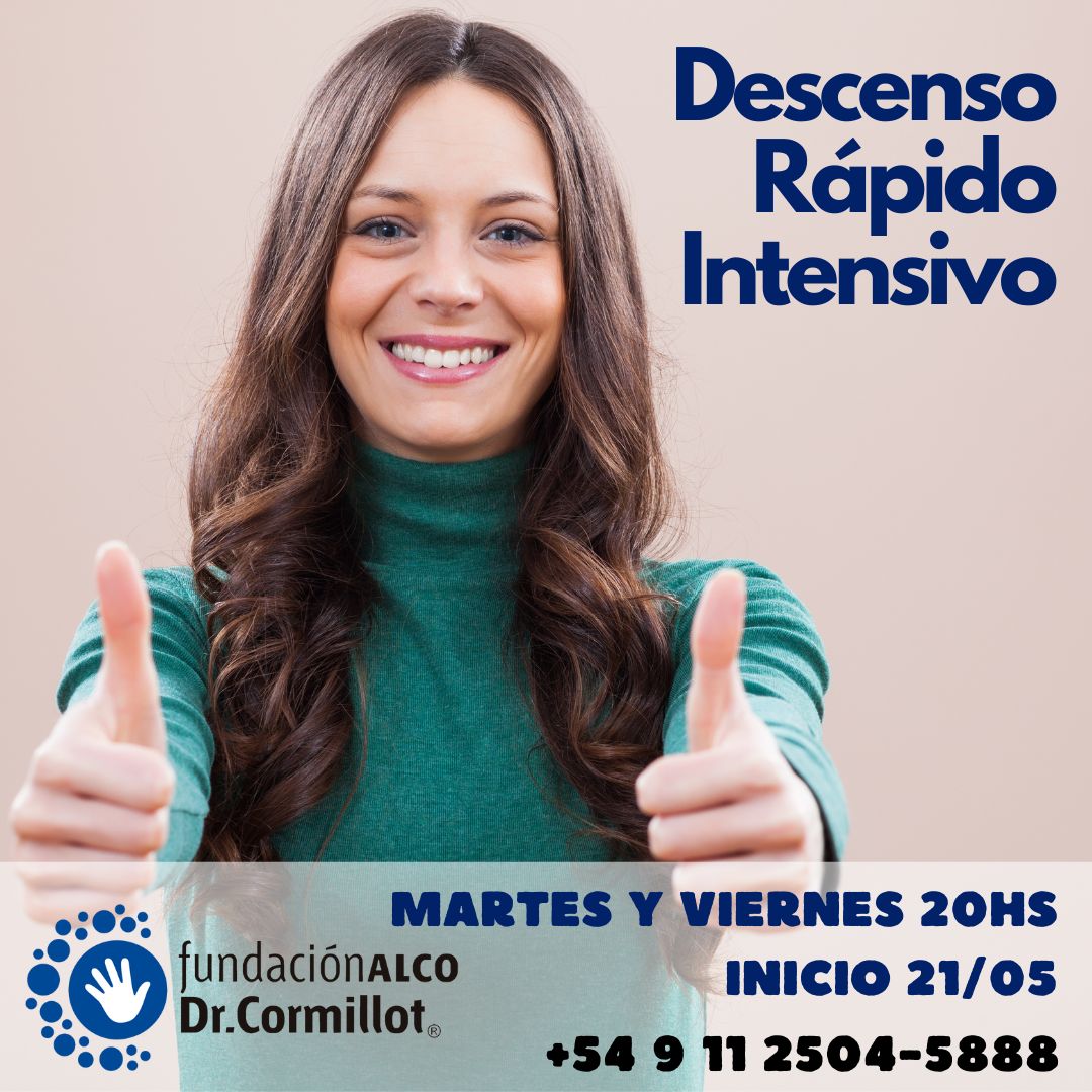 Consta de 8 reuniones, la modalidad es por Zoom y se trabaja con un tema diario para bajar de peso. Se realiza un plan muy estricto en créditos/calorías (20 créditos o 1000 kcal.) específico (Plan de Descenso Rápido), con equivalencia de porciones y menúes semanales. No incluye literatura de apoyo, por lo tanto se debe adquirir el “Pasaporte” y “Plan de Descenso Rápido”.