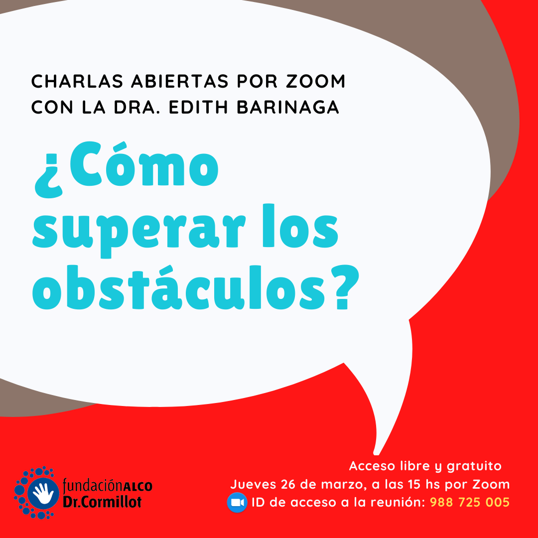 Desde este Jueves, a las 15 hs vas a poder participar en forma libre y gratuita de todas las charlas de la Dra. Edith Barinaga por Zoom. Serán de lunes a viernes durante toda la cuarentena.