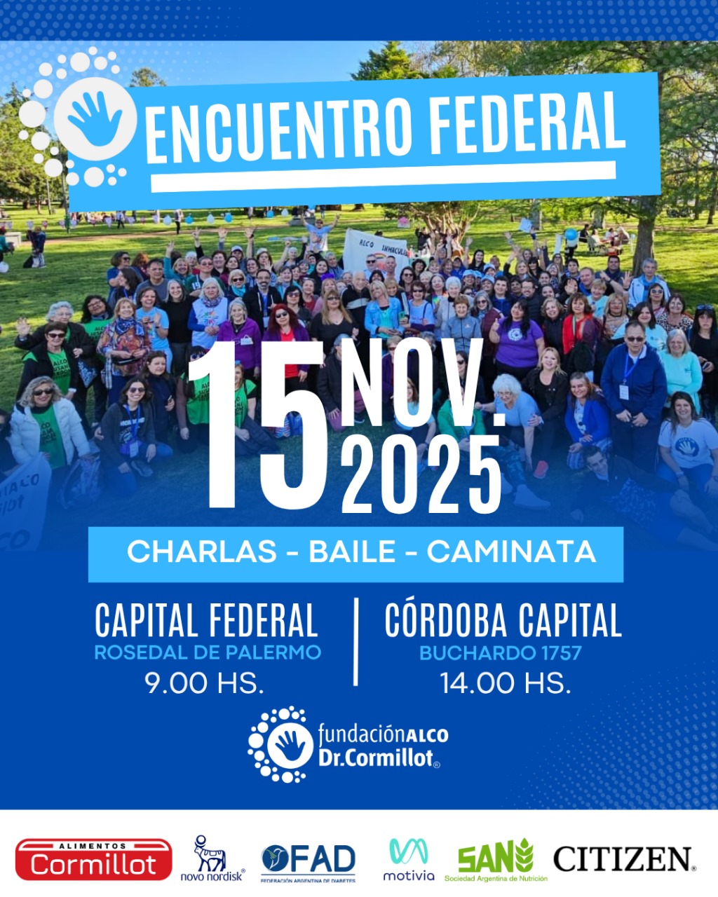 El sábado 15 de noviembre nos encontraremos para compartir un rato espectacular en el Rosedal de Palermo junto al Dr. Cormillot, Sergio Verón, el Dr. Adrián, la Lic. Pasquini, el equipo de Cuestión de Peso y grupos ALCO de todas las regiones. Habrá caminata, baile y muchas otras actividades geniales…